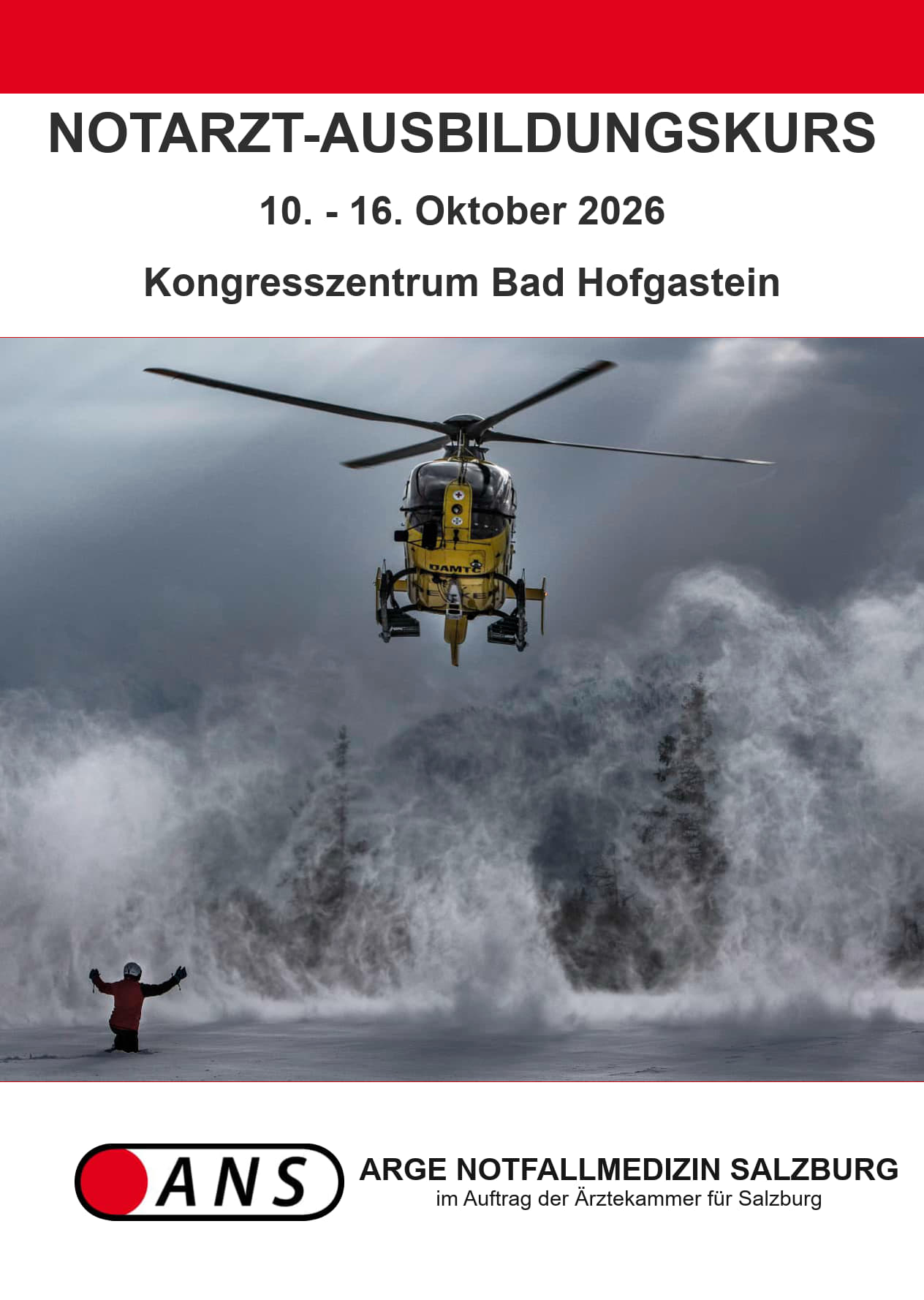 Weiterbildungslehrgang Notarzt neu (mind. 80 Lehreinheiten) gemäß § 40 ÄrzteG.